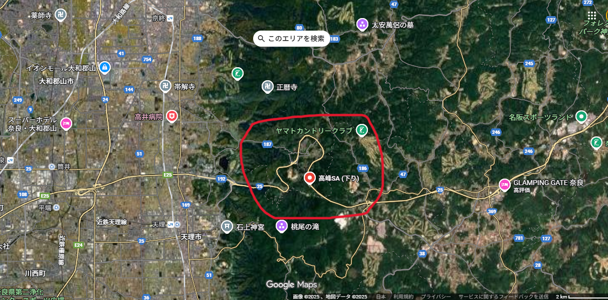 ●名阪国道 天理東インターから高峰SA間のΩカーブ